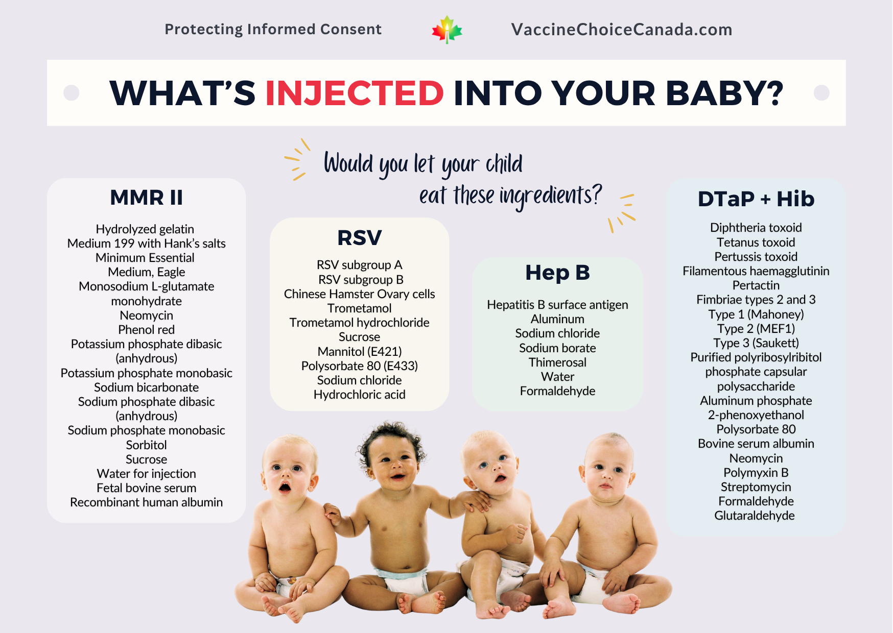 Intended to assist with educating family, friends and neighbours regarding the safety, efficacy and necessity of all childhood vaccines.