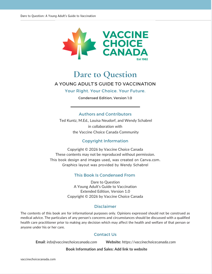 Vaccine Choice Canada has created a clear, easy-to-read guide for young adults to help them understand the safety, effectiveness, and potential risks of vaccinations.